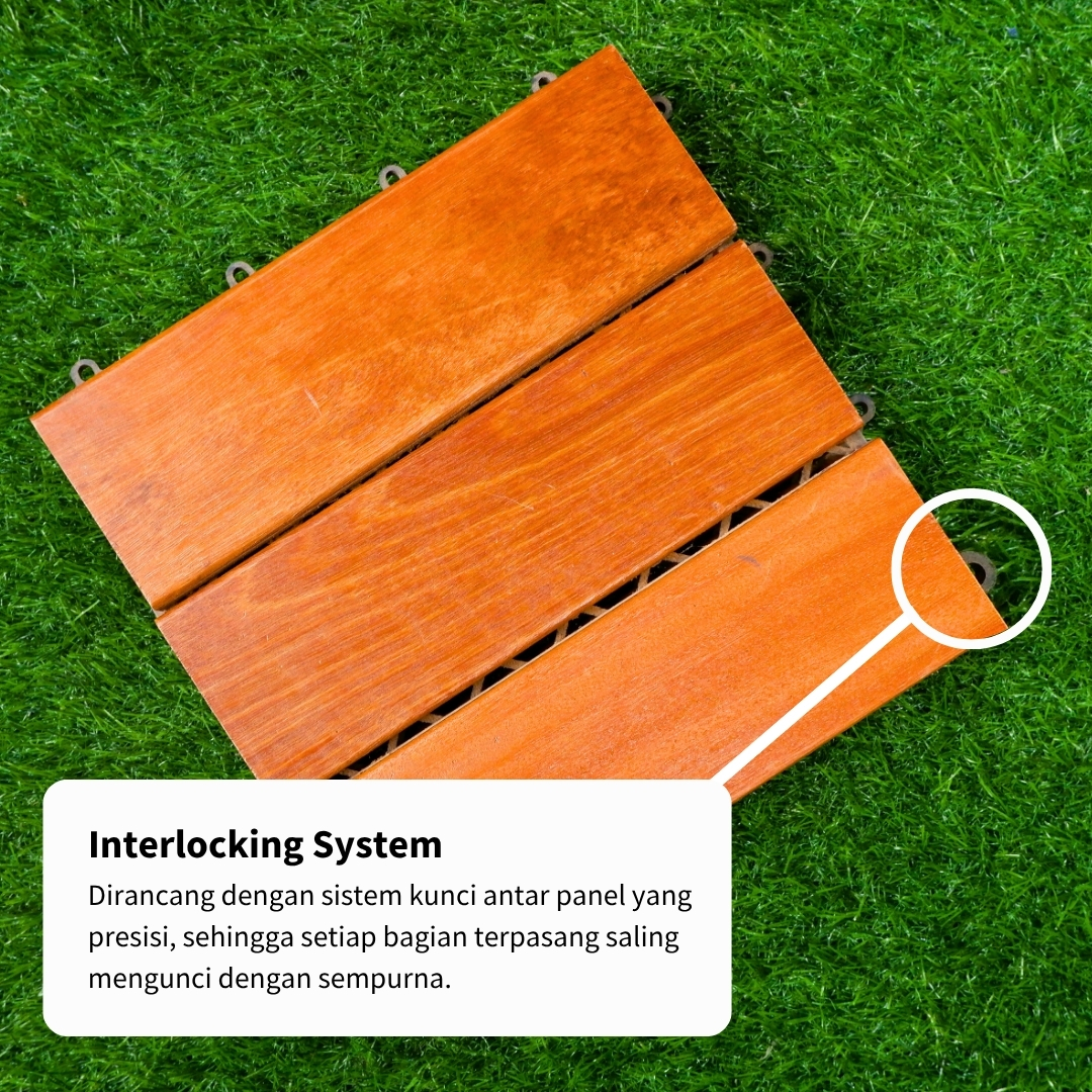 - Sistem interlock atau klik memudahkan proses pemasangan tanpa alat tambahan.