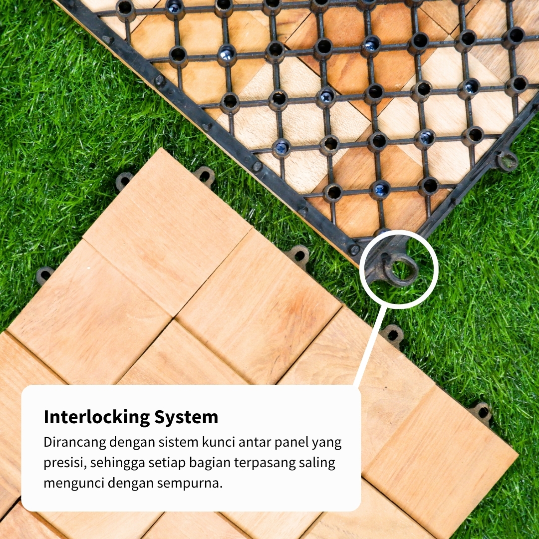 - Ukuran setiap panel adalah 28 x 28 cm, ukuran yang praktis dan ideal untuk pemasangan modular.