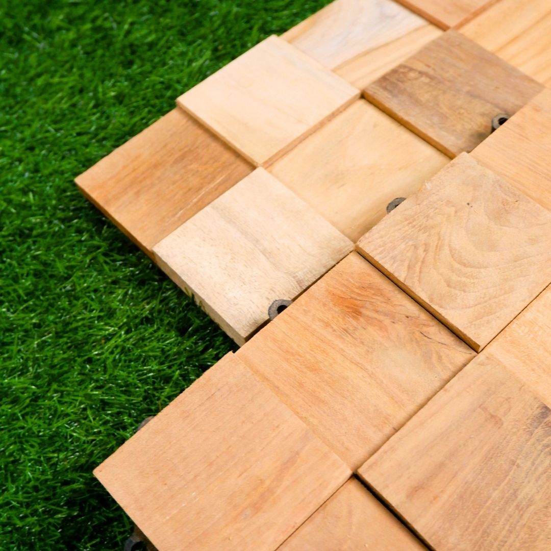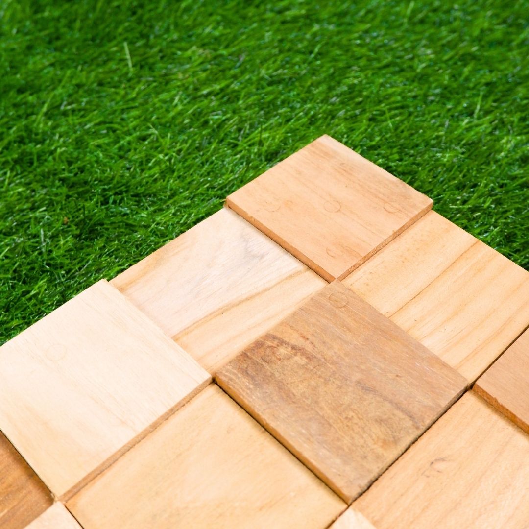 - Bagian atas menggunakan kayu jati asli yang memiliki karakter serat alami yang unik di setiap pcs.